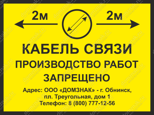 Знак «Кабель связи, производство работ запрещено» изготавливается в нескольких вариантах:
