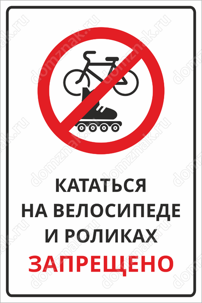Табличка «Кататься на велосипедах и роликах запрещено» изготавливается на основе из пластика ПВХ или оцинкованного металла.