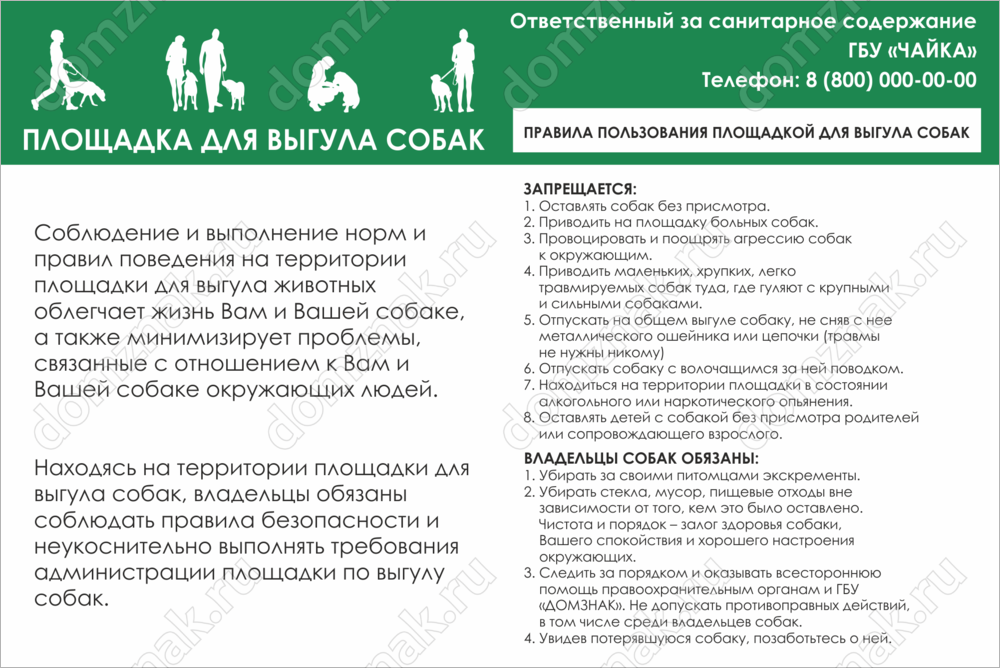 Табличка «Правила пользования площадкой для выгула собак» изготавливается на основе из пластика ПВХ или оцинкованного металла.