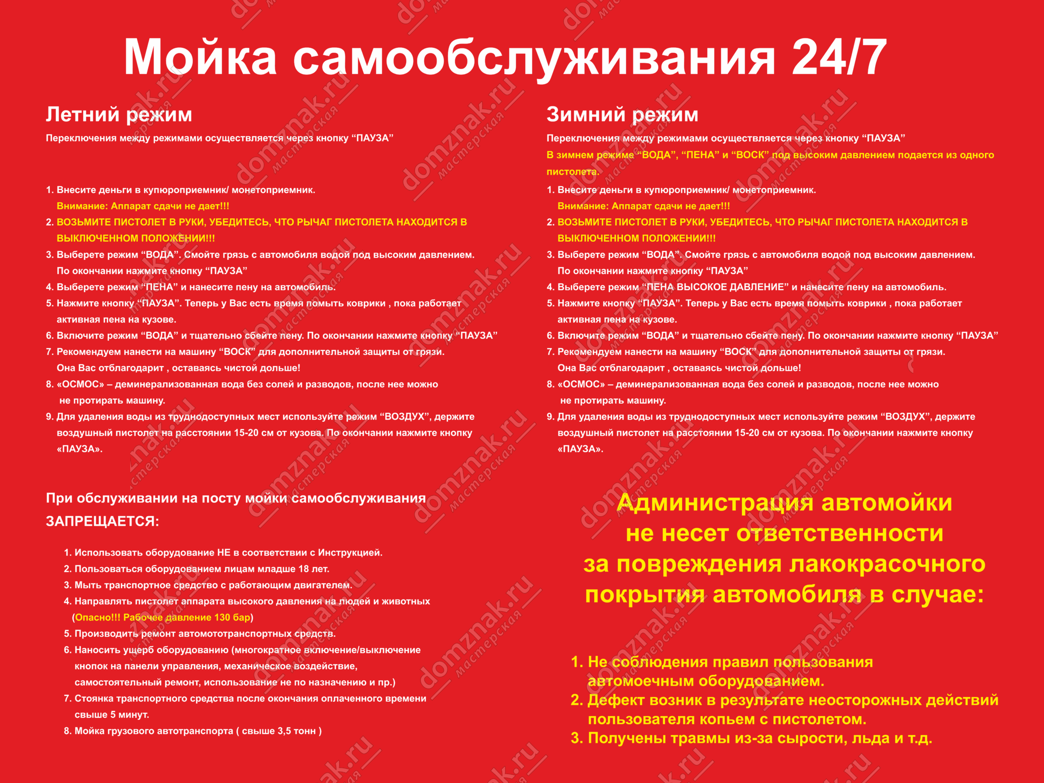 Табличка «Правила пользования мойкой самообслуживания» изготавливается на основе из пластика ПВХ или оцинкованного металла.