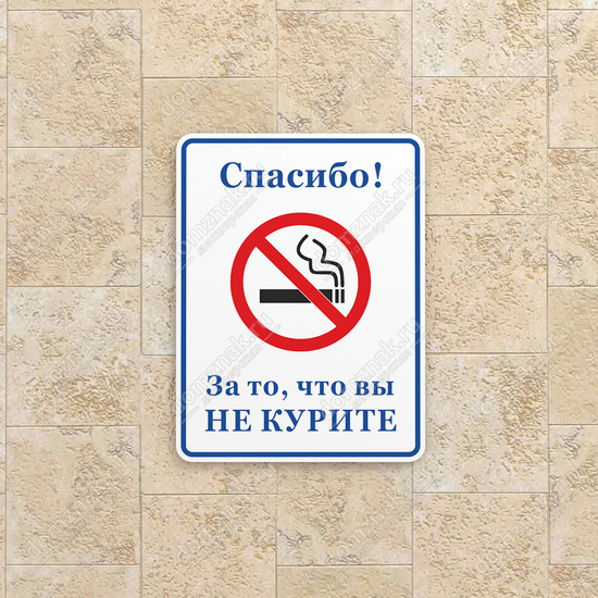 Табличка Спасибо, за то, что вы не курите изготавливается на основе из пластика ПВХ или оцинкованного металла.
