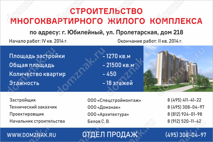 Паспорт строительного объекта изготавливается на основе из пластика ПВХ, баннерной ткани или оцинкованного металла. Изображение наносится методом полноцветной печати, красками устойчивыми к воздействию окружающей среды.