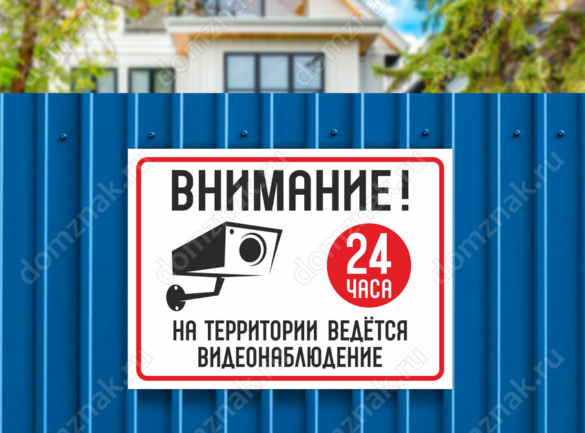Табличка «Внимание! Ведётся видеонаблюдение 24 часа» изготавливается на основе из пластика ПВХ или оцинкованного металла.