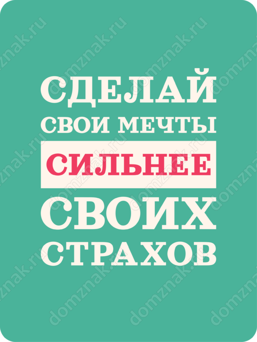 Табличка «Сделай свои мечты сильнее своих страхов»