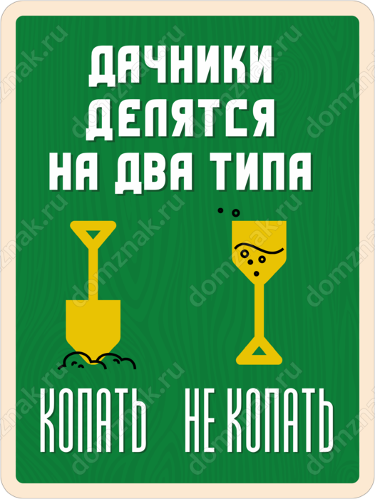 Табличка «Дачники деляться на вида типа: копать, не копать.»