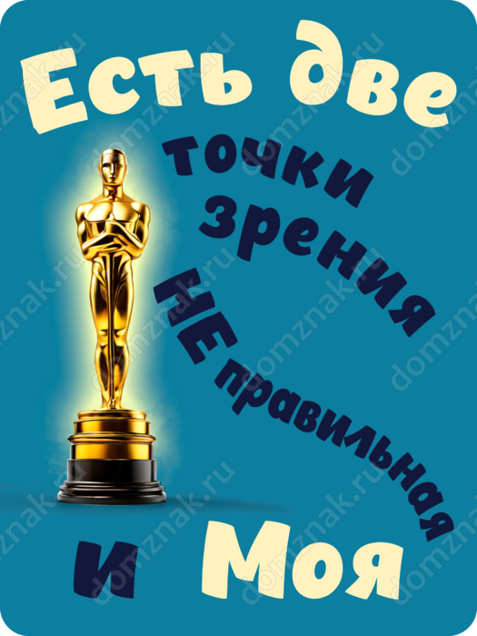 Табличка «Есть две точки зрения не правильная и моя» изготовлена из пластика ПВХ, толщиной 4 мм. Изображение наносится по технологии УФ-печати. Табличка предназначена для использования как в помещении, так и на улице.